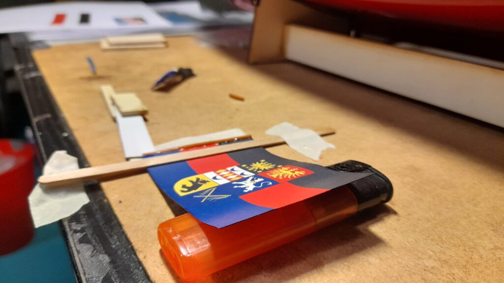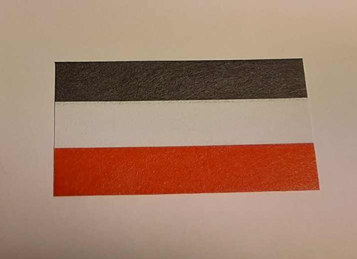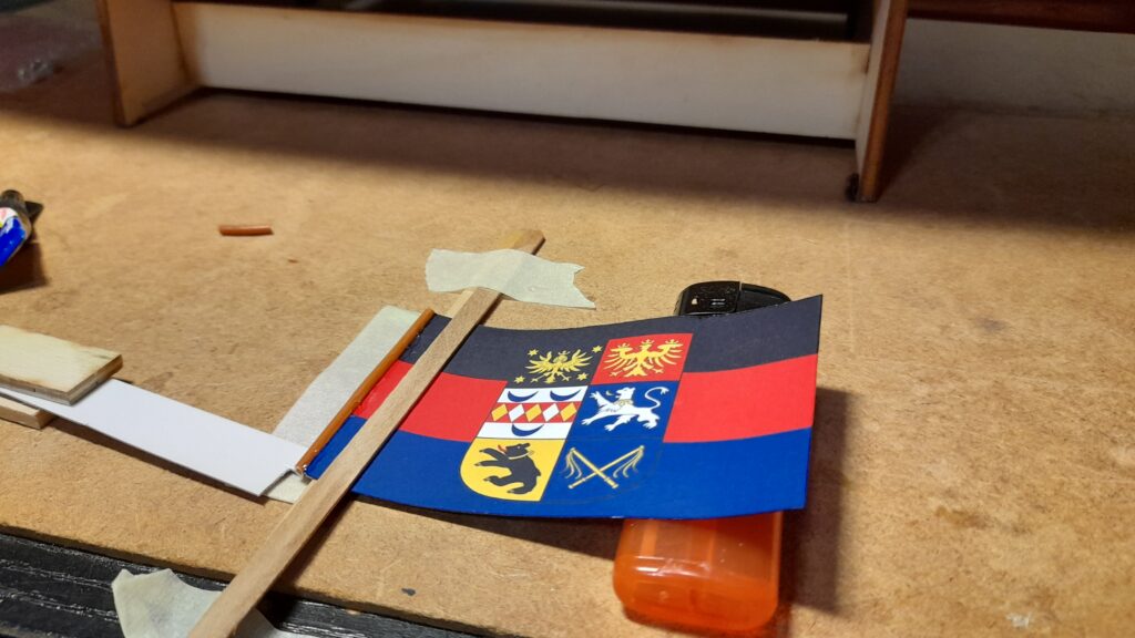 Die Ostfriesland-Flagge ist leider nicht als fertige Flagge im Maßstab 1:12 erhältlich, weshalb ich sie also selber herstellen musste.