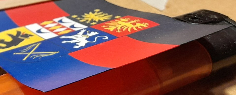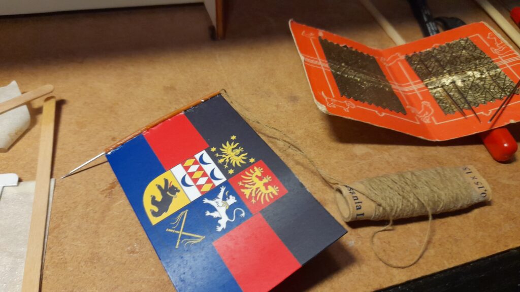Danach wurde das Papier leicht gewellt und mit mattem Klarlack, von beiden Seiten, lackiert um die Flagge wasserfest zu machen.