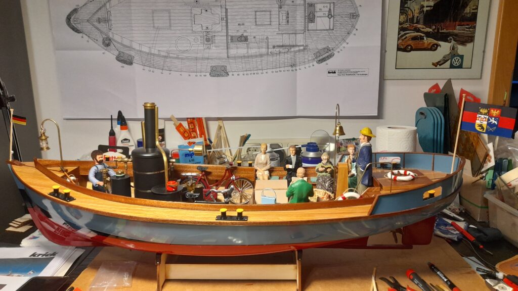Krick legte dem Bausatz eine kleine Deutschland-Flagge und eine Reichsflagge bei. Historisch gesehen fällt der Inselversorger in die Zeit um 1900 und somit wäre eine Reichsflagge als historisch korrekt anzusehen.