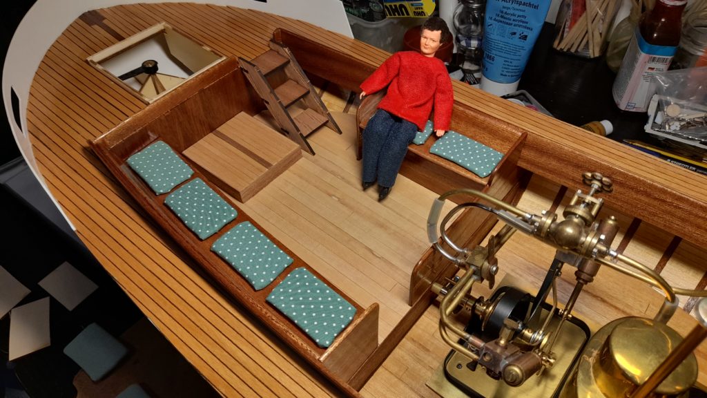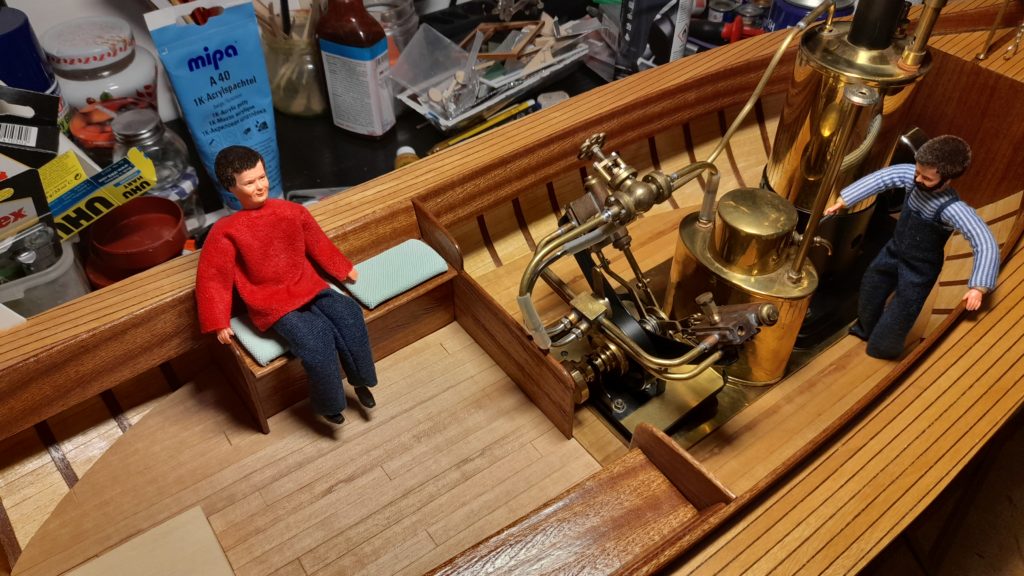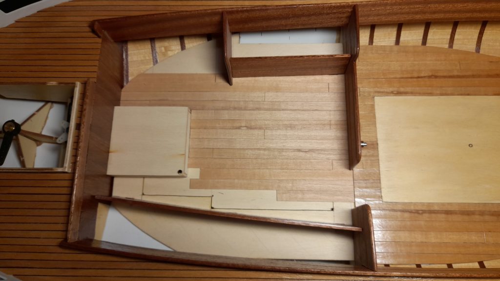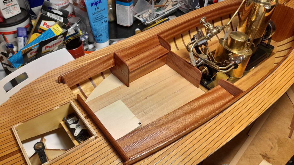 Die Blanken auf dem Oberdeck wurden verleg und die Erhöhung für den Steuerstand zusammen geleimt sowie Beblankt.
