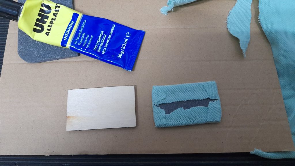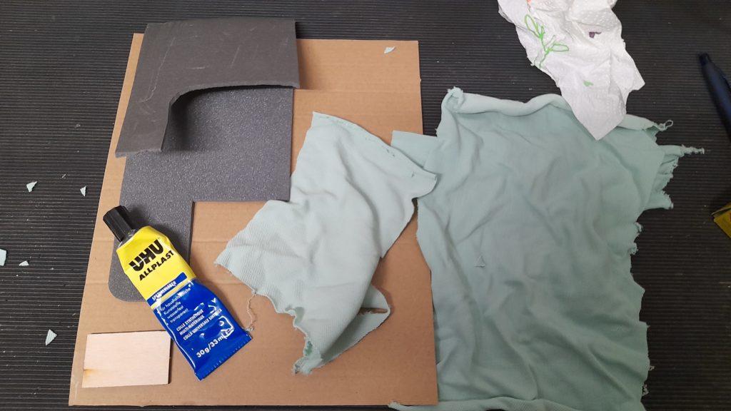 Außerdem habe ich weiche Sitzkissen, anstelle der harten Holzunterlagen, hergestellt. Zuerst wollte ich Stoff von einem alten Polohemd verwenden, aber meine Tochter fand in ihrem Bastel-Fundus einen grünen Stoff mit kleinen weißen Punkten, der mir viel besser gefällt.