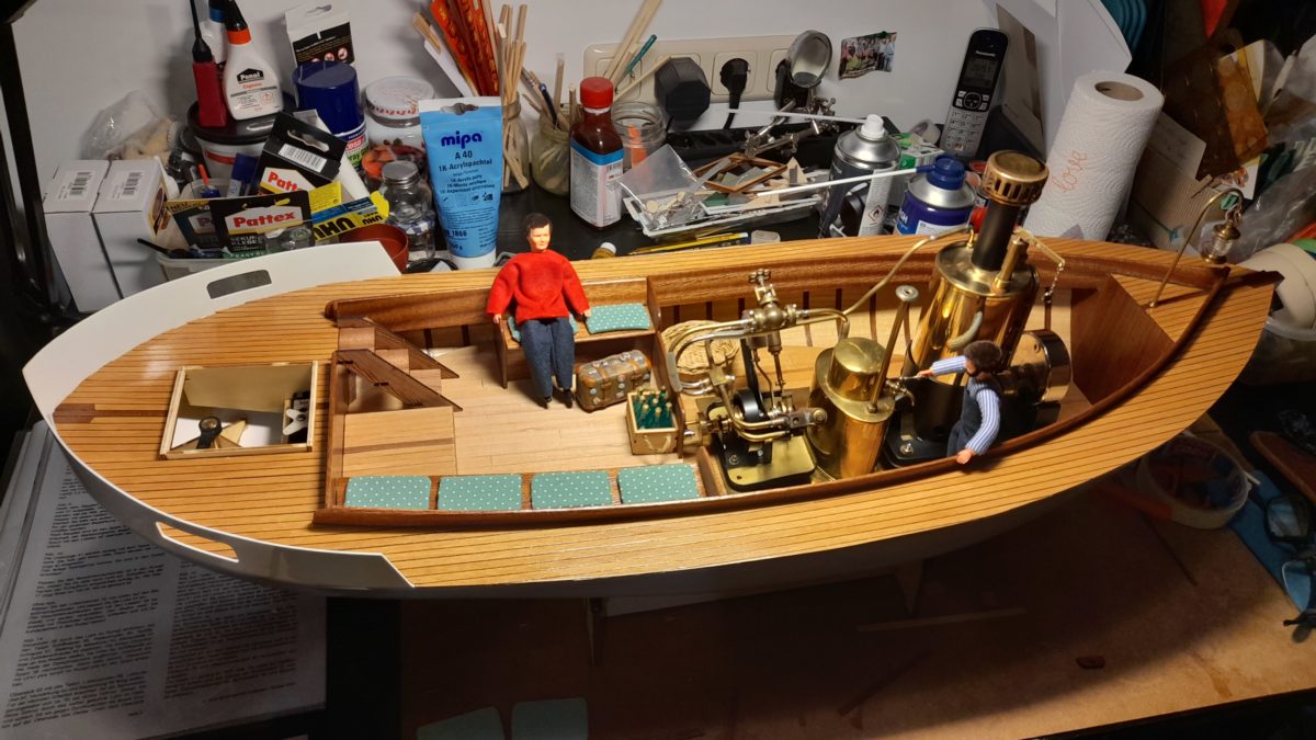 Die Blanken auf dem Oberdeck wurden verleg und die Erhöhung für den Steuerstand zusammen geleimt sowie Beblankt.