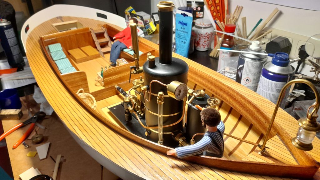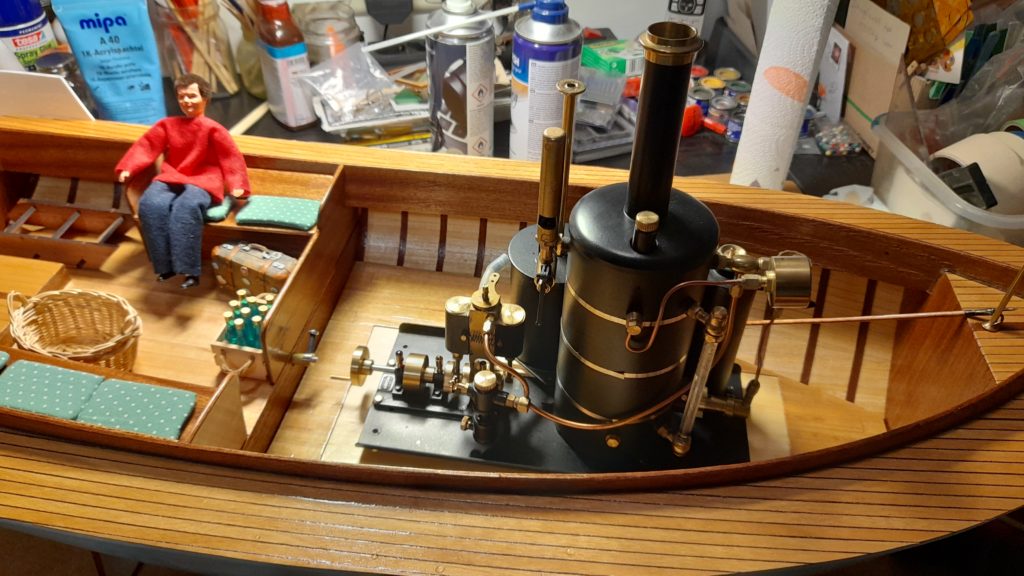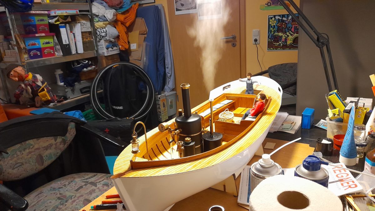 Eigentlich sollte ja die auf Gas umgebaute D49 Dampfmaschine von Wilesco die Borkum antreiben. In der Bucht fand ich eine Regner Midi Dampfmaschine für einen guten Preis und konnte nicht widerstehen. 😀